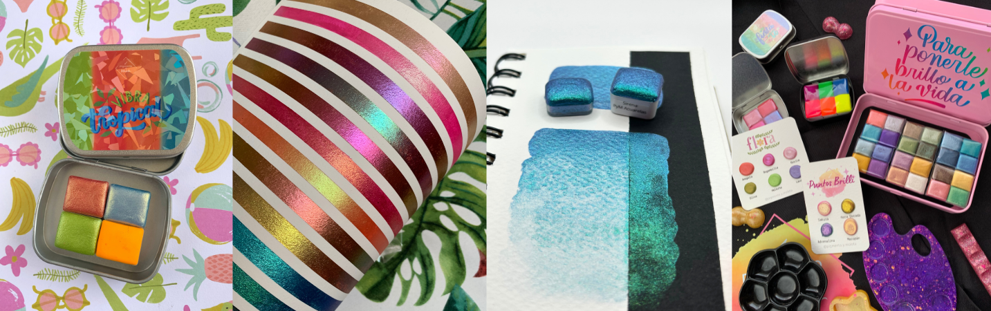 Aquí encontrarás más de 160 colores de acuarelas artesanales, cuya presentación viene en formato sólido, hechas con cuidado y atención al detalle, por Frany Muñoz. Las acuarelas de tipo metalizado y extrabrillantes son la especialidad de esta tienda.